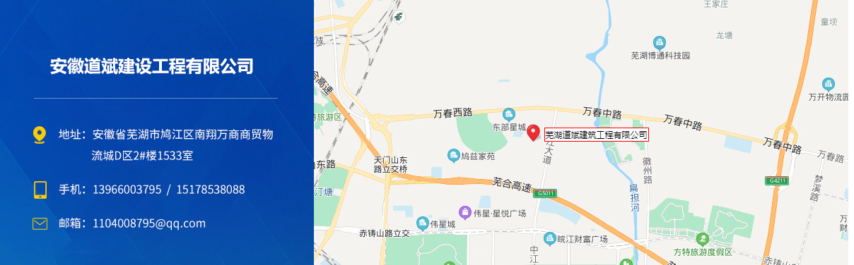 - 安徽道斌建設(shè)工程有限公司成立于2018年4月,主要從事工程施工、工程勞務(wù)、鋼結(jié)構(gòu)施工、市政公用施工,市政施工總承包貳級(jí)、地基基礎(chǔ)工程專(zhuān)業(yè)承包貳級(jí)、防水防腐保溫工程專(zhuān)業(yè)承包壹級(jí)、鋼結(jié)構(gòu)工程專(zhuān)業(yè)承包貳級(jí)、建筑裝修裝飾工程專(zhuān)業(yè)承包貳級(jí)、建筑工程施...